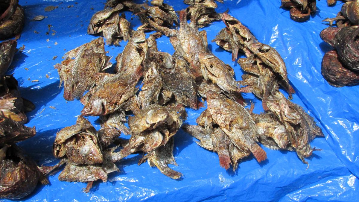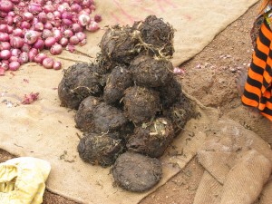 Digging live mudfish out of dry dirt for food during the dry season.